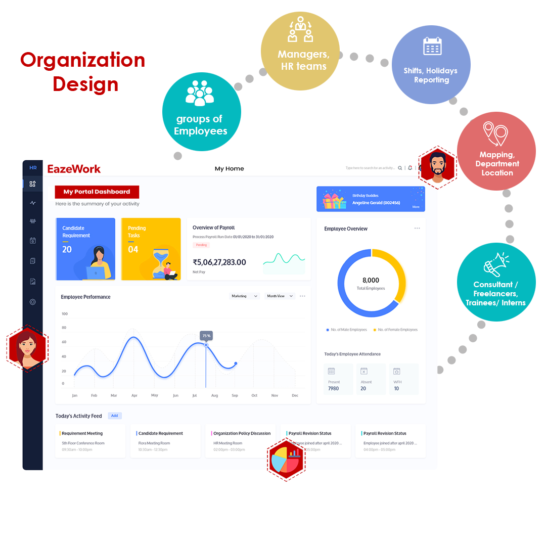 Design your Company’s organizational structure, view the eEmployee directory, and manage multiple Companies, and multiple currencies.